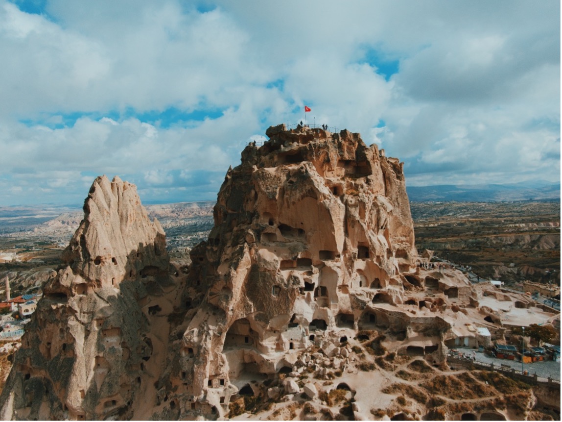 Kapadokya’nın kaleleri, kaya kütlelerine oyulan yapılar kadar şehir merkezlerinde yükselen surlu kaleleriyle de dikkat çeker. Merdivenler, burçlar ve dar geçitler geçmişin savunma düzenini anlatır. Zirveye çıktıkça vadiler, peribacaları ve geniş ufuk tek bakışta açılır.